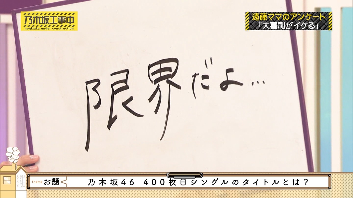 - 0:15 乃木坂工事中 https://tv-aichi.co.jp/nogi-kou/