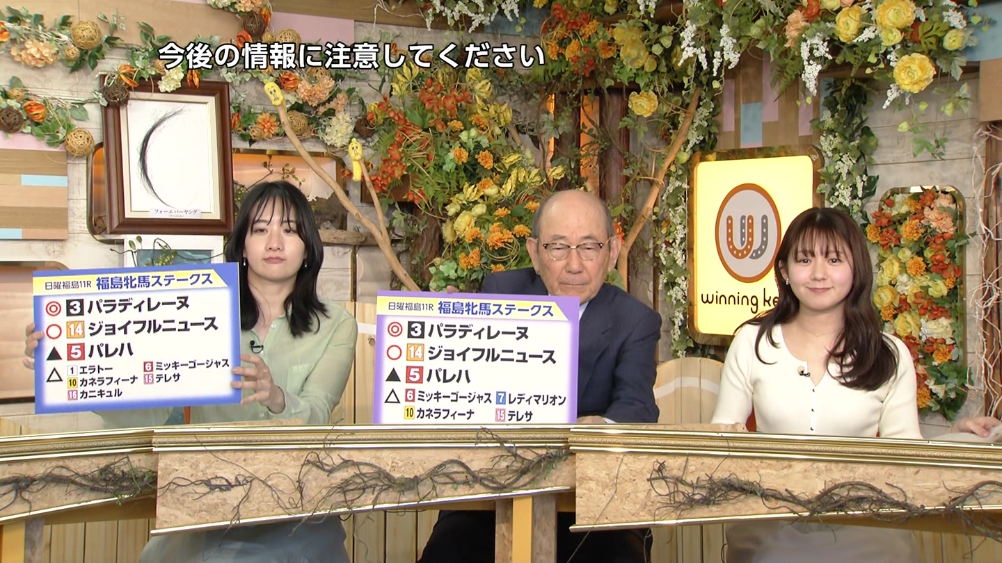 - 皆藤愛子,森千晴,舩山陽司,木和田篤(ラジオNIKKEI) 【スタジオ解説】板津雄志(サンケイスポーツ) 【中山パドック解説】京増真臣(研究ニュース) 【阪神パドック解説】小野颯真(研究ニュース)